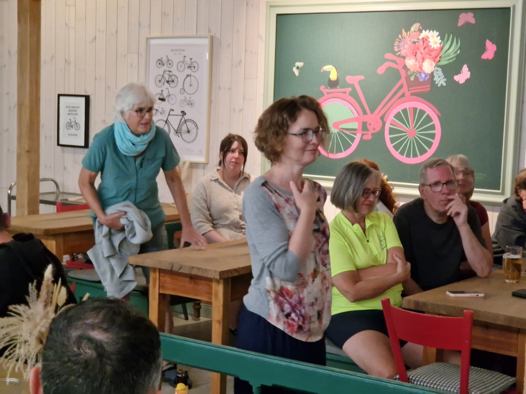 Hier wurden wir von 2. Bürgermeister Dirk Rieb empfangen, der uns auf dem Rad noch bis zum Selbsthilfecafe am Sommerberg begleitete. Dort berichtete uns Simone Hoffmann von der Selbsthilfearbeit im Landkreis Main-Spessart.