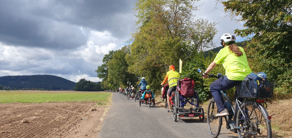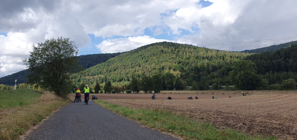 Kurz vor der Ankunft in der Bike Lodge Spessart und dem Ende unserer MS-Begegnungsfahrt entlang des Main-Radwegs in Main-Spessart.