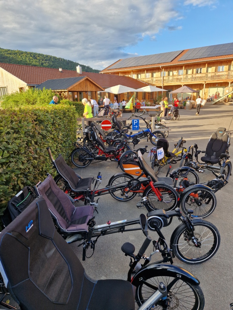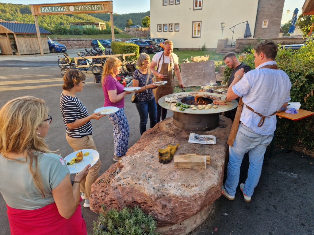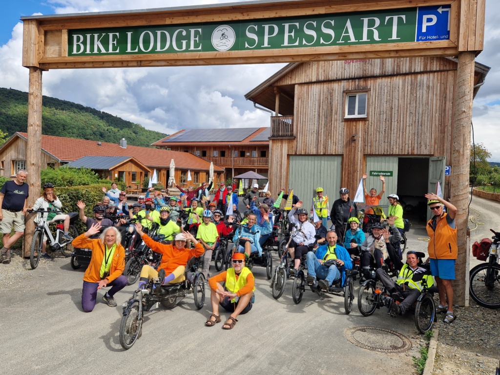 Nachdem wir vom Ausflug zur Ruine Schönrain zurückkamen, wurde die Möglichkeit alle Räder Probe fahren zu können, von der MS-Selbsthilfegruppe ausgiebig genutzt bevor wir gemeinsam in der Bike Lodge Spessart ein letztes Abendessen geniesen konnten.