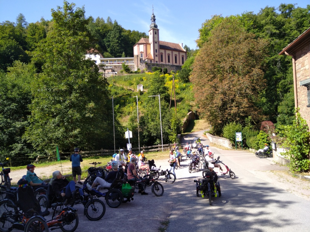 Nachdem wir die Räder bereits am Anreisetag angepasst hatten konnten wir am Dienstag Morgen bereits eine erste Probefahrten in der Gruppe zur Buchenmühel unternehmnen, die Unterhalb der Wallfahrtskirche Maria Buchen liegt.