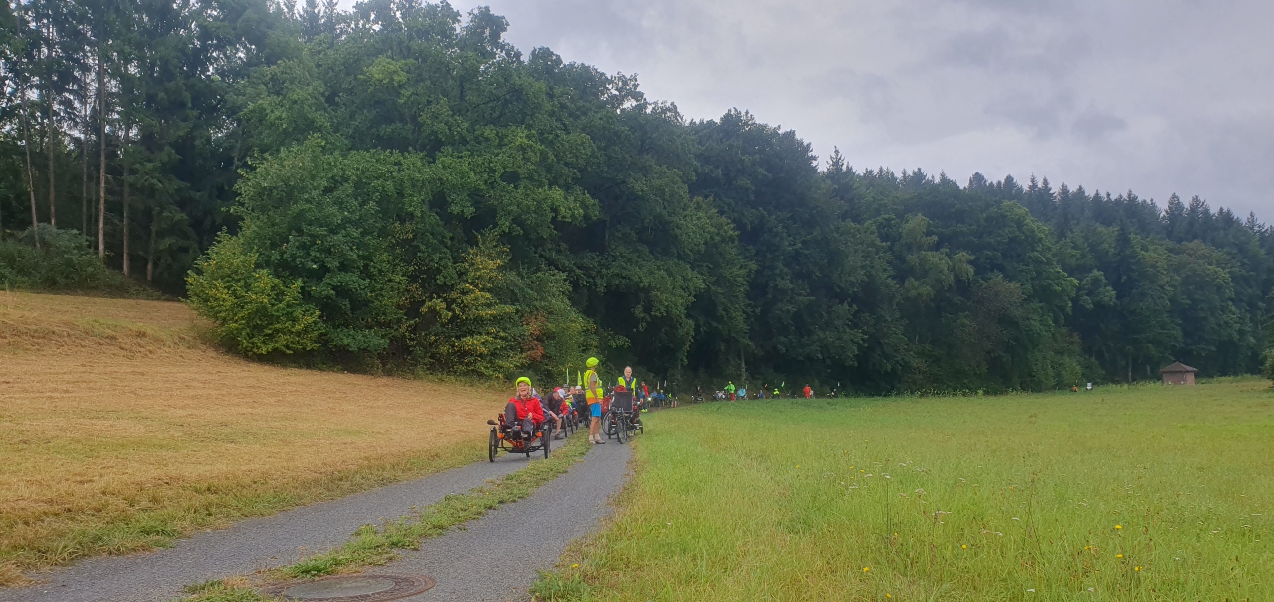 Auf diesem Streckenabschnitt wurden wir von Mainfranken TV begleitet. Der Beitrag ist ebenso auf unserer Seite Liegedreiradtour 2025 einebettet.