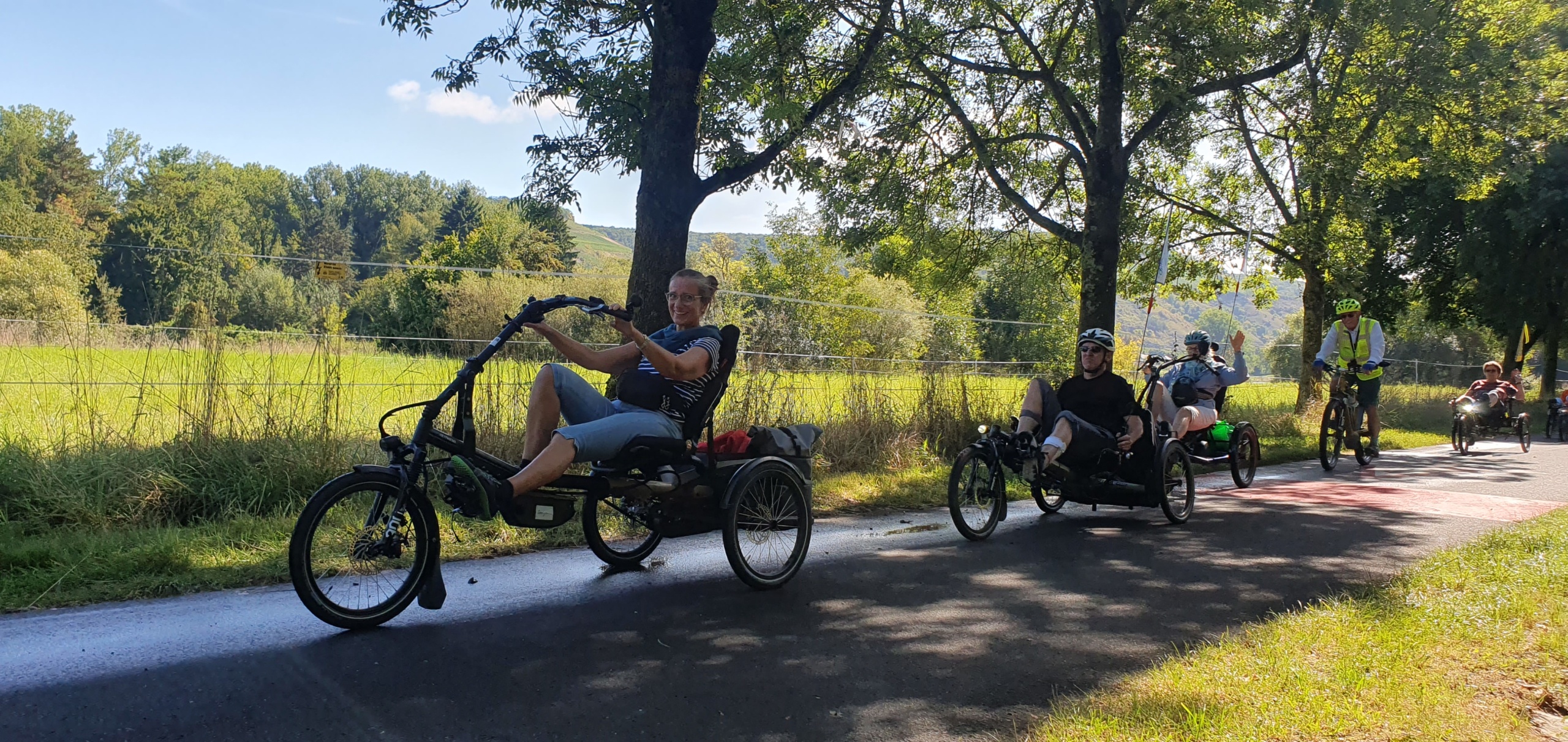 Die Räder standen bei der Anreise der Teillnehmer schon bereit und wurden den Bedürfnissen entsprechend für erste Probefahrten angepasst. Dies bot uns zudem die Gelegenheit, mit dem stellvertretenden Landrat Christoph Vogel sowie dem Kreisvorsitzenden der Grünen Gerhard Kraft, über die Möglichkeiten der individuellen Mobilität ür Menschen mit Beeinträchtigungen zu sprechen – insbesondere über die Vorteile, Ausstattungsmerkmale und Anpassungsoptionen von Spezialrädern.